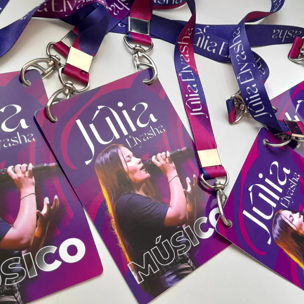 CREDENCIAL PVC + CORDÃO PERSONALIZADO + MOSQUETÃO DUPLO
