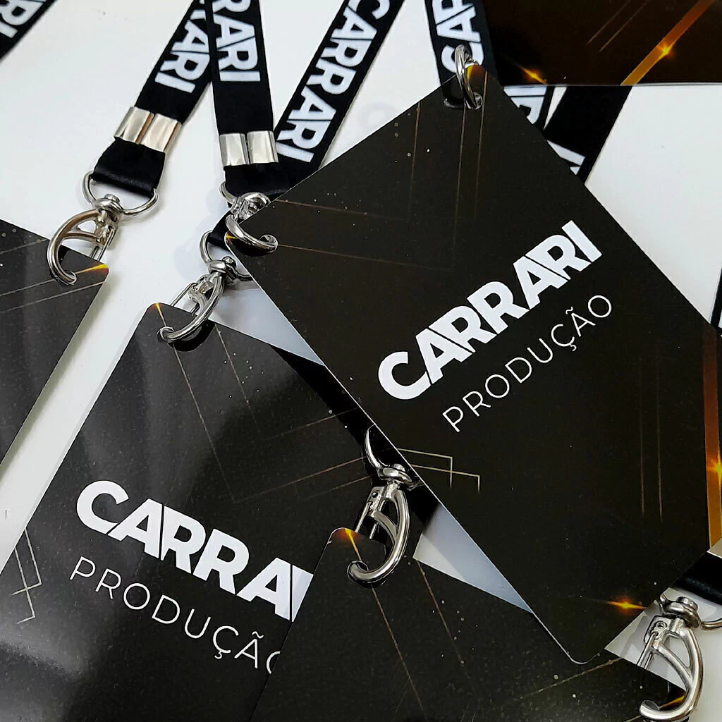CREDENCIAL PVC + CORDÃO PERSONALIZADO + MOSQUETÃO DUPLO